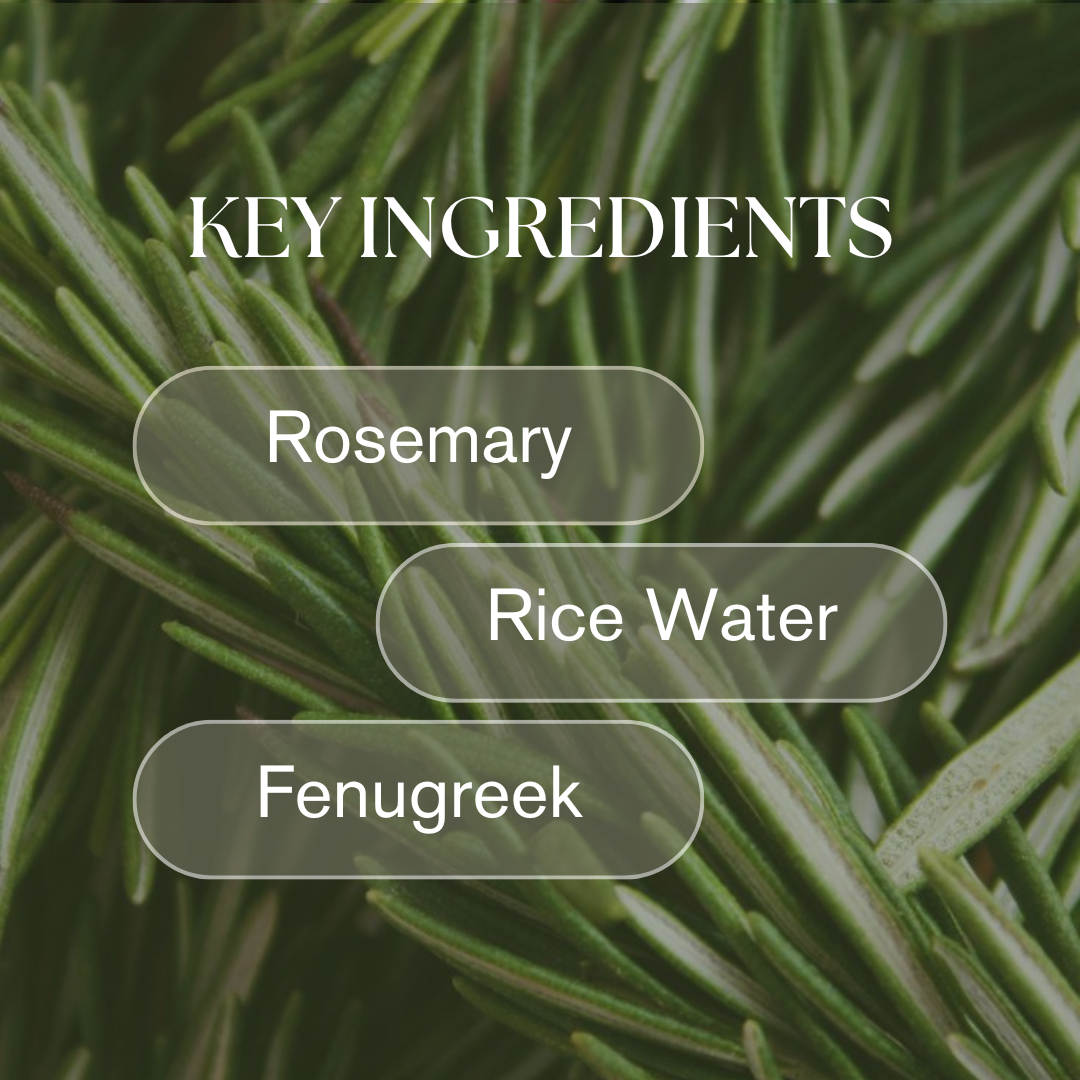 Water (Aqua), Aloe Barbadensis Leaf Juice, Oryza Sativa (Rice) Extract, Rosa Damascena Flower Water, Emblica Officinalis (Amla) Extract, Rosmarinus Officinalis (Rosemary) Leaf Extract, Hibiscus Rosa-Sinensis Flower Extract, Nardostachys Jatamansi Root Extract, Ocimum Sanctum (Basil) Leaf Extract, Cinnamomum Zeylanicum Bark Extract, Syzygium Aromaticum (Clove) Bud Extract, Piper Nigrum (Black Pepper) Fruit Extract, Cinnamomum Tamala (Bay Leaf) Extract, Murraya Koenigii (Curry Leaf) Extract, Rosa Damascena Flower Extract (Rose Petals), Nardostachys Jatamansi Root Powder, Rosmarinus Officinalis (Rosemary) Essential Oil.